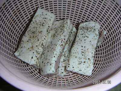 チーズはプロセスチーズの塊と1cm程度に切ってみた